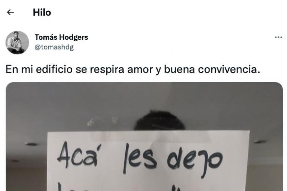 Un bueno ejemplo de ello lo ha dado el usuario de Twitter @tomashdg, que ha subido a esa red social el recado que le dejó en forma de letrero un vecino a otro, del que, por lo que se ve, estaba completamente harto.