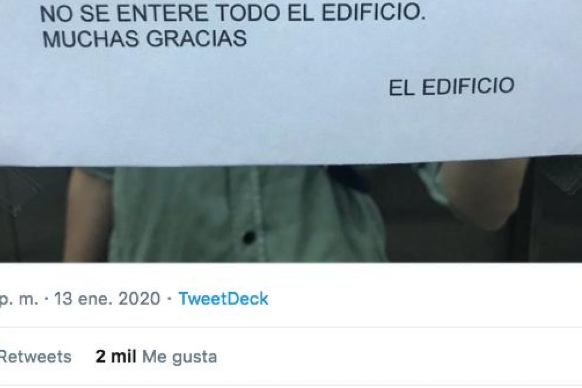 “Se solicita a los nuevos vecinos del 3ªA que cada vez que cojan como hienas drogadas tengan respeto y no se entere todo el edificio”, se puede leer en el cartel.