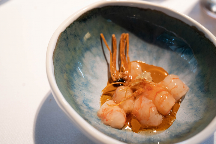 El menú en sí es realmente brillante, aunque la cúspide llega con los mariscos, una gamba roja marinada en arroz me dejó sin palabras, uno de los platos del año y de mi vida sin lugar a dudas, al que le sigue una cigala con salsa de sobrasada, velouté de la misma cigala y gelée de perejil, dos pases brillantísimos.