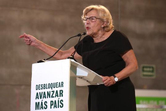 Manuela Carmena, en el cierre de campaña de Más País apoyando a Íñigo Errejón