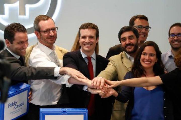 Un equipo formado, como reconocen ellos mismos, para llevar a cabo la "refundación" del Partido Popular. Como director de orquesta (es decir, jefe de campaña), Casado ha situado a su amigo Teodoro García Egea. Este diputado murciano es una de las estrellas emergentes del Partido Popular con tan solo 33 años.