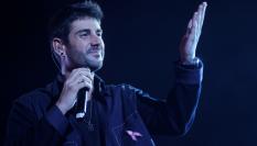 Porque Melendi ha elegido vestir completamente de negro y, para darle una nota de color, se ha puesto un llamativo cinturón de colores.