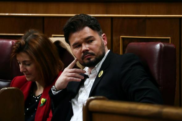Gabriel Rufián, portavoz de ERC en el Congreso, ha sido uno de los grandes focos de atención durante el inicio del debate de investidura que se desarrolla este sábado en el Parlamento.