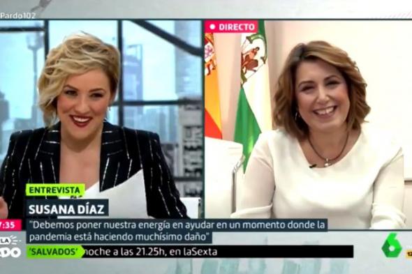 “La veo tan ‘sanchista’ que no sé si me la han cambiado. Salga del cuerpo de Susana Díaz”, le dijo la presentadora a Díaz. “Me pongo en la piel de Pedro Sánchez, me pongo en su pellejo porque está sufriendo una pandemia con un Gobierno de coalición y con una derecha asalvajada”, replicó la política.