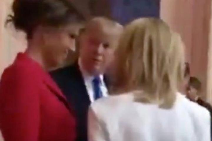 Previamente, Trump y Brigitte Macron ya habían protagonizado una curiosa escena en su saludo inicial cuando Trump protagonizó uno de sus extraños apretones de mano.