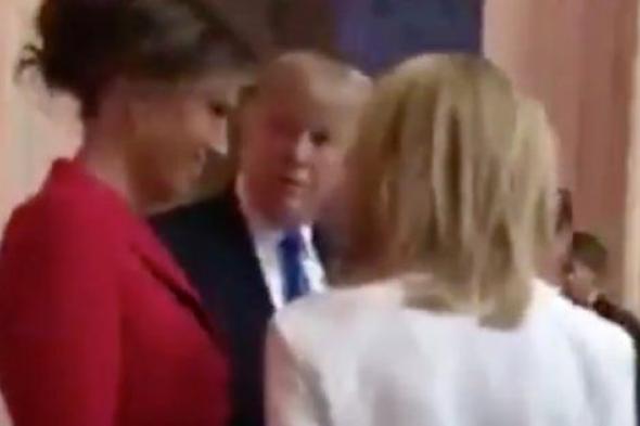 La primera dama intenta soltarse pero Trump tiene su mano tan apretada que logra protagonizar una de esas extrañas coreografías que el mandatario suele provocar con sus saludos.