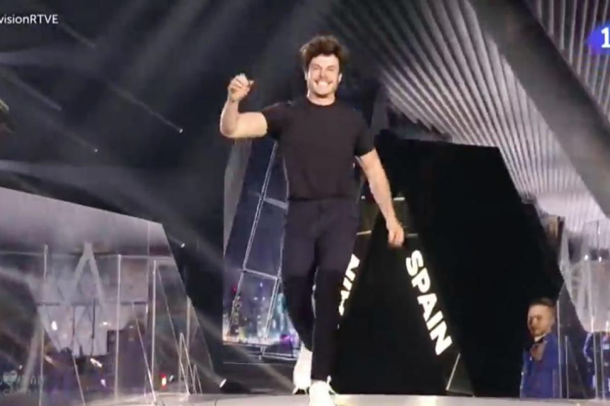 El representante español, que cantará en el último lugar La Venda, ha aparecido en el escenario vestido todo de negro con unas zapatillas blancas.