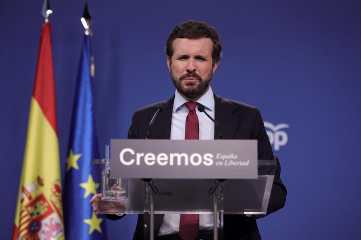 Una foto de Pablo Casado sonriendo bajo la frase "España se encamina a la quiebra, estamos abocados al rescate". EL MUNDO lo muestra como si se tratase de un deseo en vez de una preocupación. pic.twitter.com/8Oa1DCUlgh