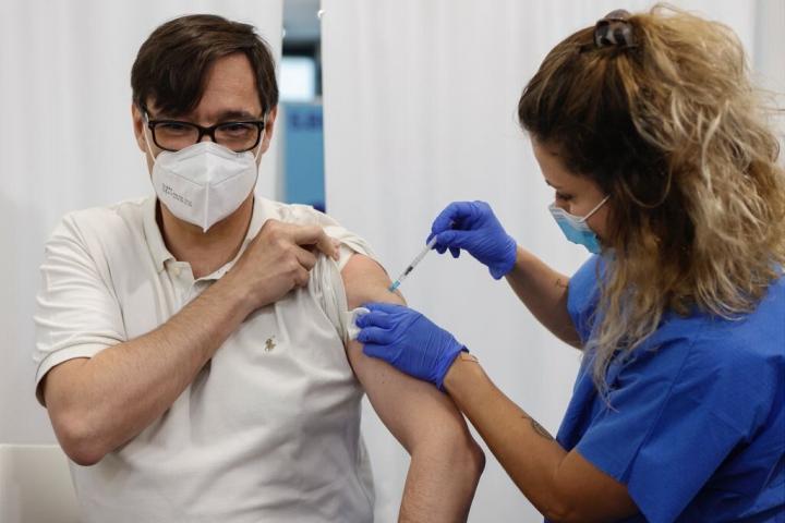 Ahora sí. Ahora de verdad. El exministro de Sanidad, Salvador Illa, ha recibido este miércoles la primera dosis de la vacuna contra el coronavirus en las instalaciones de Fira de Barcelona.