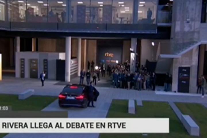 Se veía venir... y ha ocurrido. El líder de Ciudadanos, Albert Rivera, ha llegado pasadas las 21.00 a TVE para el debate electoral que organiza la televisión pública.
