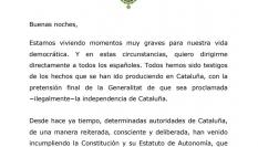 La resolución, presentada por Catalunya en Comú Podem y aprobada con el apoyo de Junts per Catalunya y ERC, condenó la toma de posición del rey en el “conflicto catalán”, así como lo que consideró “justificación de la violencia” policial el 1-O, y abogó por la abolición de la institución monárquica, que el Parlament calificó de “caduca y antidemocrática”.