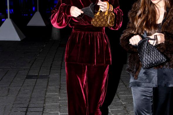 Al sarao que congregó a la flor y nata de las redes sociales tuvo que acudir con el mismo look que al Teatro Real: ir justa de tiempo no le permitió tener que elegir dos modelitos. Para ambos eventos lució un traje de chaqueta estilo batín de terciopelo burdeos, que combinó con unos zapatos joya y un minibolso de Louis Vuitton.