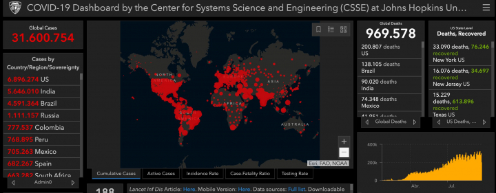 En cuanto al número de casos, Estados Unidos ya se acerca a los 7 millones con 6.861.211 infecciones confirmadas, detalla en su web la Universidad Johns Hopkins.