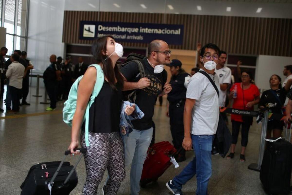 Sanitarios, pendientes de la temperatura de los pasajeros a la salida de un avión en China