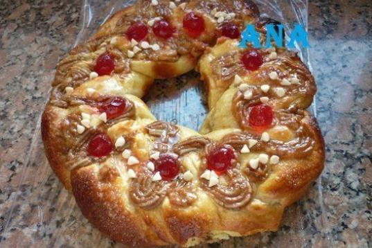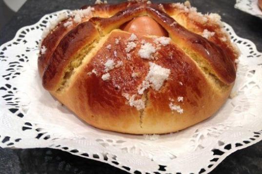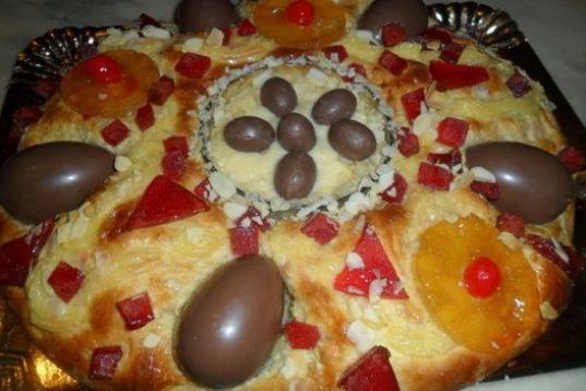 Se decora con crema pastelera, mermelada, frutas confitadas, almendras laminadas y huevos de Pascua. Consulta aquí la receta completa.