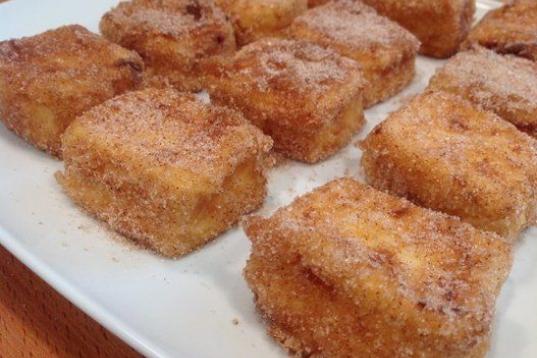 Se prepara con lecha, azúcar, maizena, piel de naranja, canela. en rema, huevo, canela y azúcar para rebozar. Consulta aquí la receta completa.