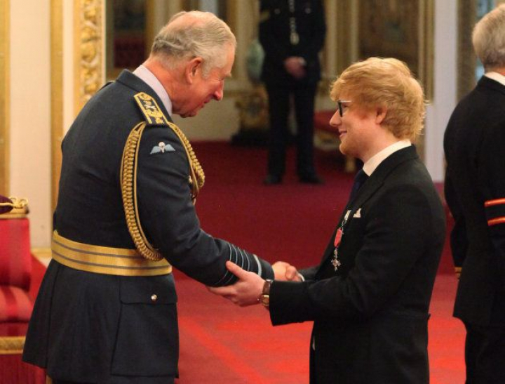 El cantante Ed Sheeran, de 26 años, recibió este jueves la medalla de la Orden del Imperio Británico por sus servicios a la música en una ceremonia celebrada en el Palacio de Buckingham. El príncipe Carlos de Inglaterra fue el encargado de prenderle la condecoración.
