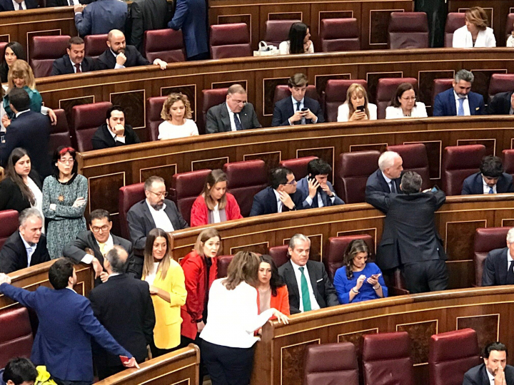 El más despistado, el ex presidente de Coca Cola y ahora diputados de Ciudadanos, Marcos de Quinto, que no paraba de aflojarse la corbata verde Vox que se había plantado sin saber que en el hemiciclo el color que se elige habla por sí solo.