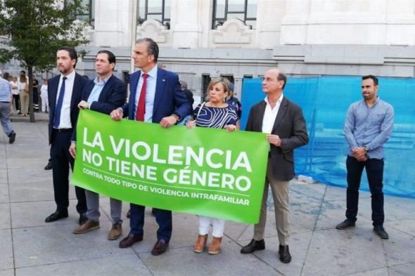 En lugar de situarse tras la pancarta condenando la violencia de género, Ortega Smith y los suyos acudieron con una en la que se podía leer “la violencia no tiene género”.