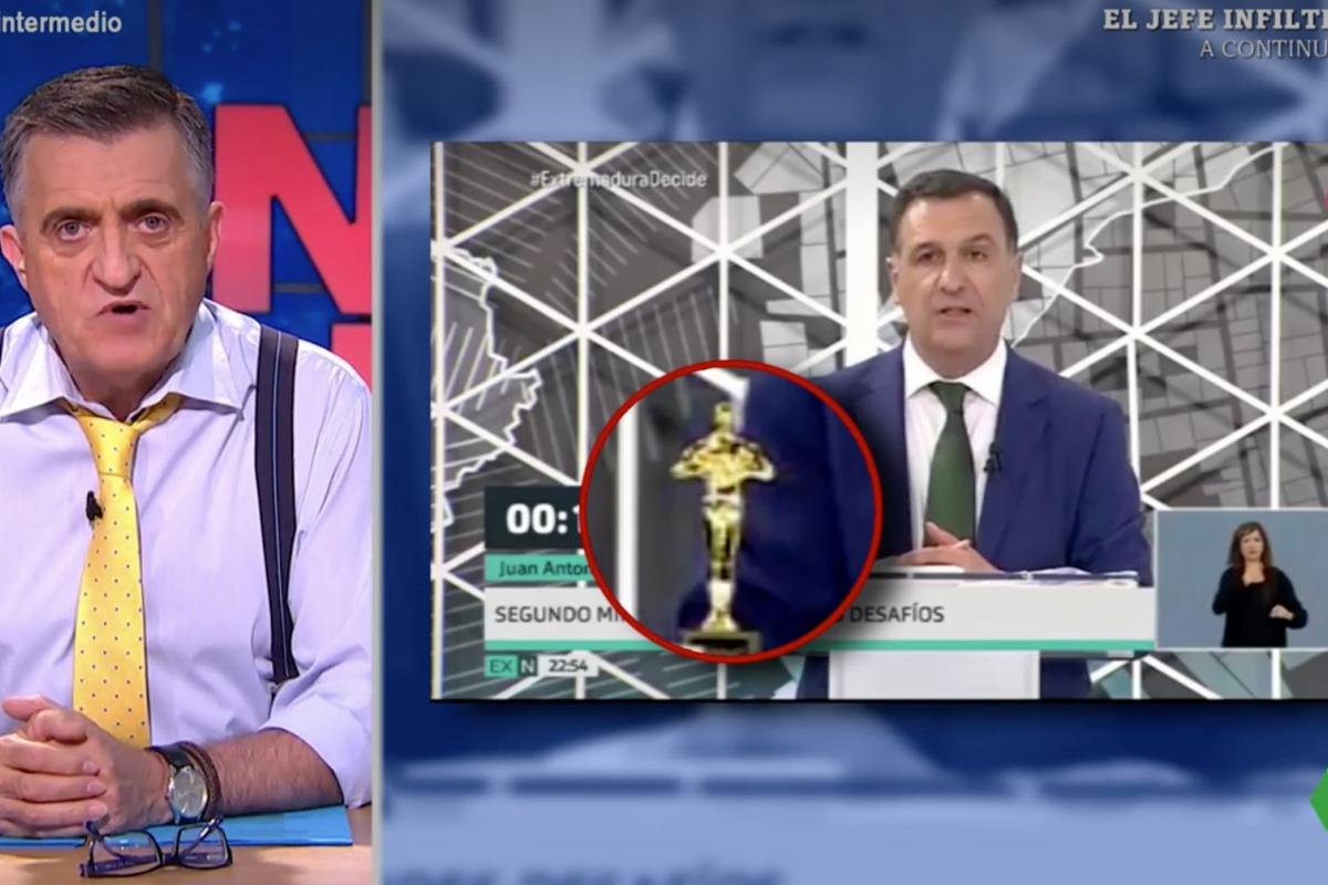 “Vaya, pues sus votantes deberán conformarse con este señor”, afirmó Wyoming, antes de reparar en un detalle: “En cualquier caso puede que Morales tuviera us Oscar sobre su atril. No sé de qué os extrañáis. Es un premio muy merecido. Un Oscar al mejor maquillaje. Ya habéis visto lo bien que se le da maquillar el franquismo”, ha sentenciado.