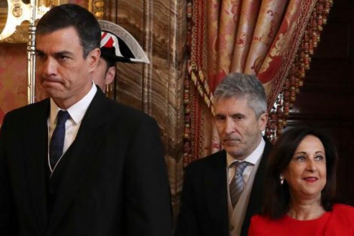 Muchos cambios este año en la Pascua Militar. Por primera vez, Pedro Sánchez y Margarita Robles han ejercido como presidente y ministra de Defensa, respectivamente, en este solemne acto castrense presidido por los reyes en el Palacio Real de Madrid.