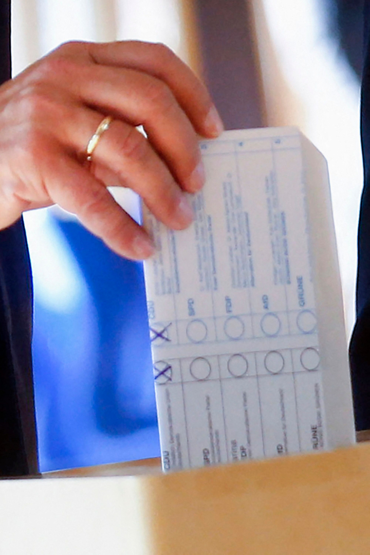 Laschet ha doblado el pliego de tal forma que era perfectamente visible para la gente presente que había marcado las dos equis correspondientes a la coalición Unión Demócrata Cristiana (CDU)-Unión Social Cristiana (CSU) que él mismo encabeza. Los fotógrafos han inmortalizado el momento.