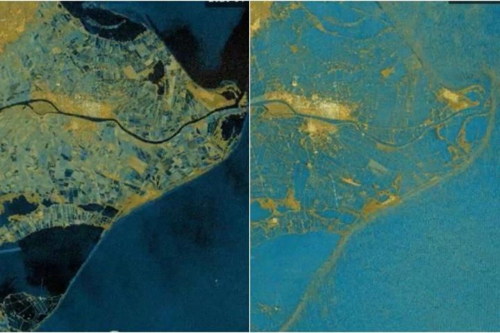 Las imágenes del satélite Sentinel-1, difundidas ayer en Twitter por Josep Sitjar, geógrafo y analista del Servicio de Sistemas de Información Geográfica y Teledección de la Universidad de Girona (SIGTE-UdG), dan cuenta del impacto del agua en la zona.