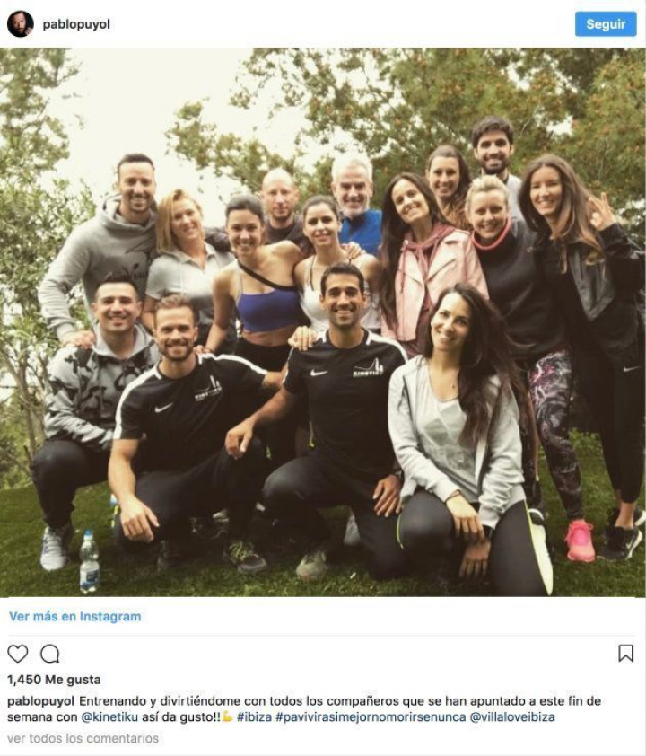 "Entrenando y divirtiéndome con todos los compañeros que se han apuntado a este fin de semana con @kinetiku así da gusto", escribió Puyol.
