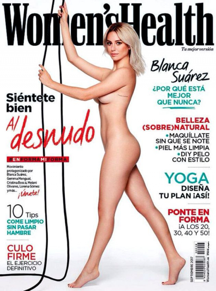 Blanca Suárez ha decidido dar el salto y protagonizar su primera portada desnuda. La actriz se ha despojado de toda clase de ropa para ilustrar el reportajeSiéntete bien al desnudodel último número de la revistaWomen's Health, en el que también participan nadadora Gemma Mengual, la actriz Melanie Olivares y la cantante Lorena Gómez.