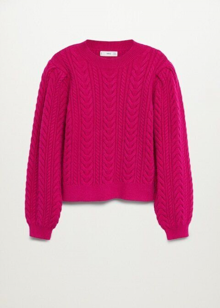 Un clásico entre los clásicos, en este caso en color frambuesa. En la serie Inma Cuesta lo lleva con parka y vaqueros, pero también es perfecto para llevarlo con un abrigo negro de corte recto. Este diseño de punto de Mango puede ser buena opción para clonar el de la serie.