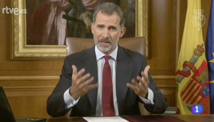 El rey Felipe VI se ha dirigido este martes por la noche a la nación y ha reconocido que España atraviesa momentos muy difíciles, pero ha querido lanzar un mensaje de tranquilidad a todos los españoles y de manera específica a los catalanes, a los que ha dicho que no están solos. "Son momentos difíciles, pero los superaremos", ha asegurado.