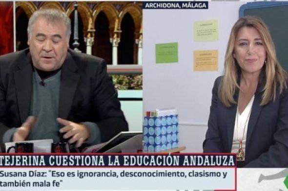 Poco después, la presidenta de la Junta de Andalucía, Susana Díaz, ha replicado en directo en Al Rojo Vivo, el programa que Antonio García Ferreras presenta en La Sexta. La dirigente socialista ha hecho la conexión sentada sobre la mesa del aula de un colegio, un escenario muy adecuado y que, seguramente, no haya sido elegido al azar.