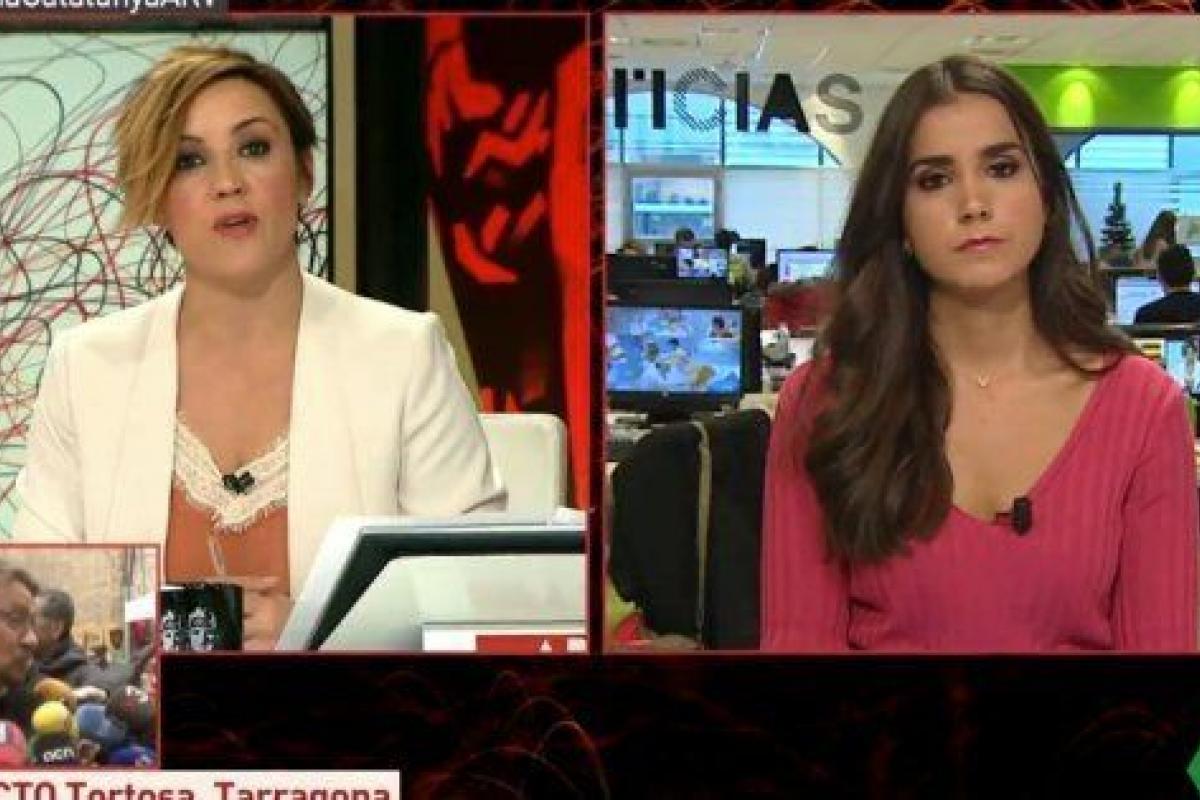 En la imagen se ve a Beatriz Zamorano, encargada de entrar en directo desde la redacción para dar noticias en Al Rojo Vivo, y al fondo un árbol de Navidad.