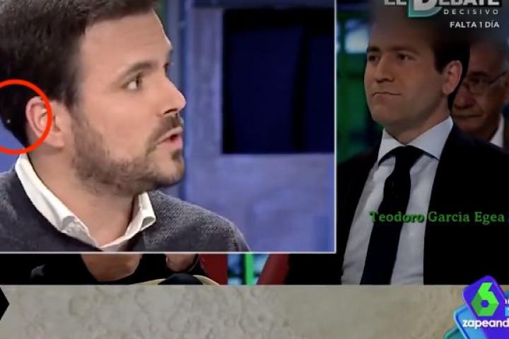 Aunque casi nadie se dio cuenta, una araña comenzó a bajar en directo por la cabeza del líder de IU, Alberto Garzón. Y luego a subir.