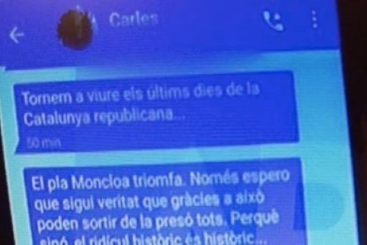 "Cada cierto rato sacaba el teléfono, se encontraba con un nuevo mensaje de Carles Puigdemont y no se atrevía a responder (...). Leía el mensaje y guardaba el mensaje. Diez minutos más tarde leía otro mensaje y lo guardaba. Así durante una hora", ha explicado Luis Navarro, durante el programa.