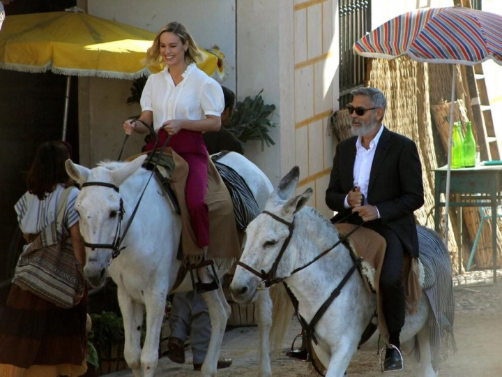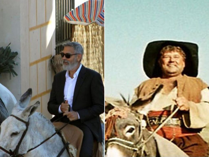 “En un lugar de la Mancha de cuyo nombre no quiero acordarme...”. Allí se ha trasladado el actor estadounidense George Clooney o, más bien, a un lugar de la Comunidad de Madrid. El galán de Hollywood que un día protagonizó Buenas noches y buena suerte se ha convertido este miércoles en un peculiar Sancho Panza, de Don Quijote de la Mancha, por las calles de Navalcarnero.