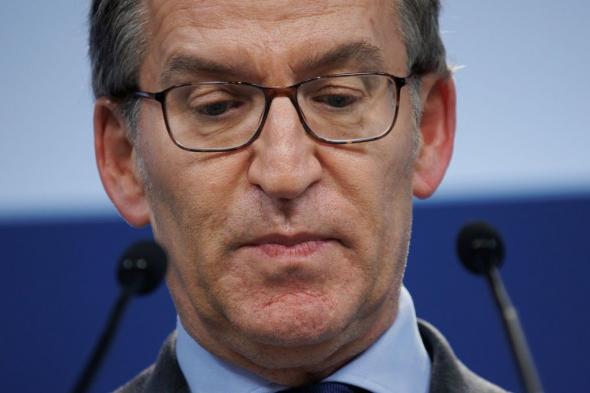 Feijóo mirando sus papeles durante la sesión fotográfica de una entrevista.
