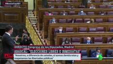 El líder de Vox, Santiago Abascal, durante su intervención en la segunda sesión del debate.