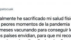 En un mensaje publicado en su cuenta de Twitter este miércoles, Tedros Adhanom Ghebreyesus se ha dirigido a Darias para darle “muchas gracias” (así, en español) por el “fuerte liderazgo” en la pandemia y por “predicar con el ejemplo” en la defensa por una equidad vacunal. “Espero que el resto del mundo siga vuestro ejemplo”, escribe el director general de la OMS, que anima a los países a “acelerar” para “salvar vidas”.