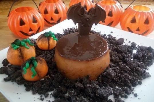 El flan sólo lleva tres ingredientes: leche, gelatina y confitura de calabaza o mermelada. Puedes hacerlo así de vistoso con galletas Oreo que simulen tierra y fondant naranja y verde para hacer las calabazas de adorno. Puedes leer...
