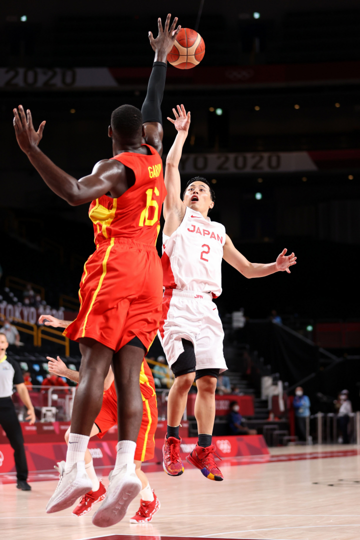 Se trata de Yuki Togashi, dorsal número dos, que se ha llevado muchos comentarios porque destacaba claramente en la pista por su altura. Y no precisamente por ser muy alto, sino justo por lo contrario: mide 1,67, algo muy poco habitual en baloncesto.