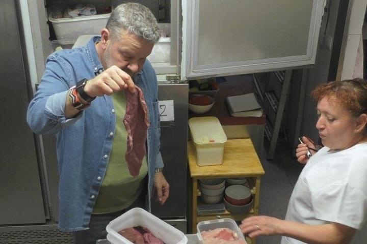 Tras encontrar un producto en mal estado, el popular cocinero le pregunta que cómo huele. “A solomillo”, le responde Martínez. ”¿A solomillo? Tienes una jeta...”, reacciona Chicote.