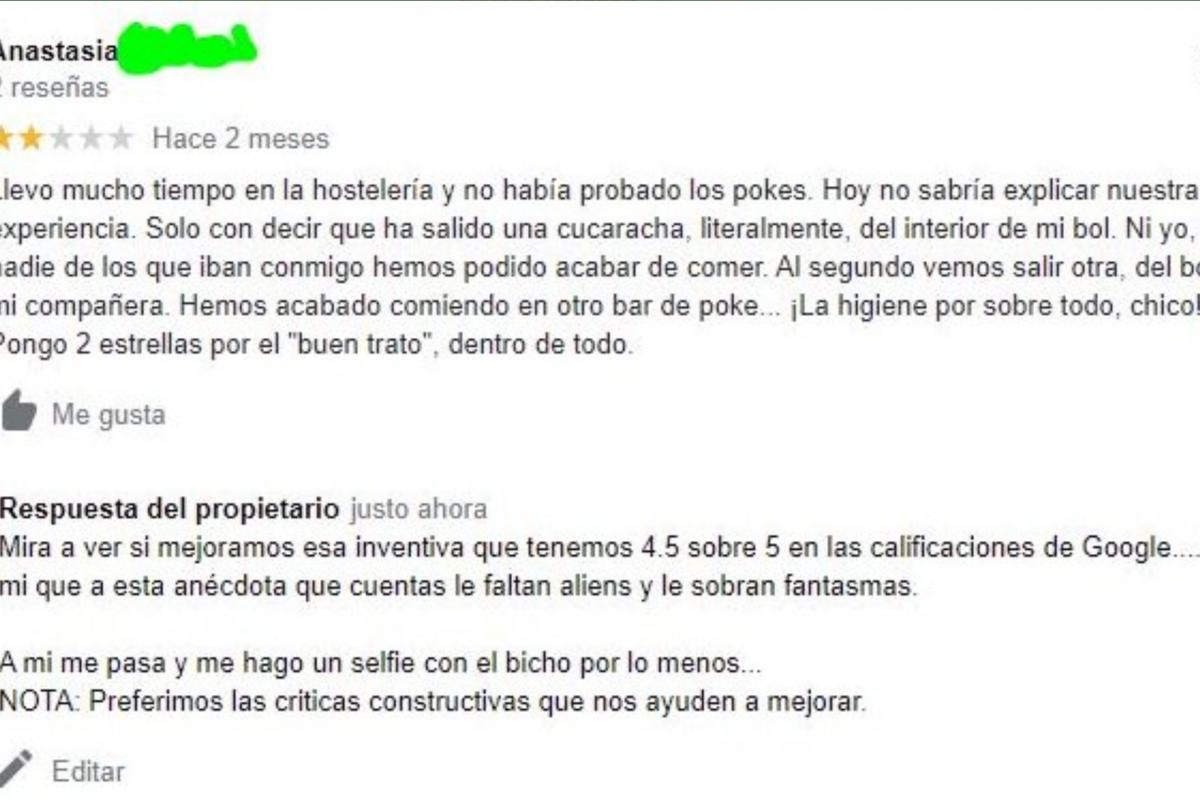 Un usuario de la red social del pájaro azul ha citado a la cuenta especializada Soy Camarero con una curiosa reseña que una mujer ha dejado de un restaurante de Poke y la rotunda respuesta del dueño.
