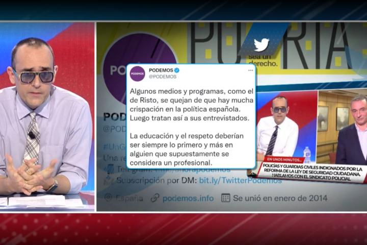 “Algunos medios y programas, como el de Risto, se quejan de que hay mucha crispación en la política española. Luego tratan así a sus entrevistados”, ha señalado el partido. “La educación y el respeto deberían ser siempre lo primero y más en alguien que supuestamente se considera un profesional”, ha rematado.