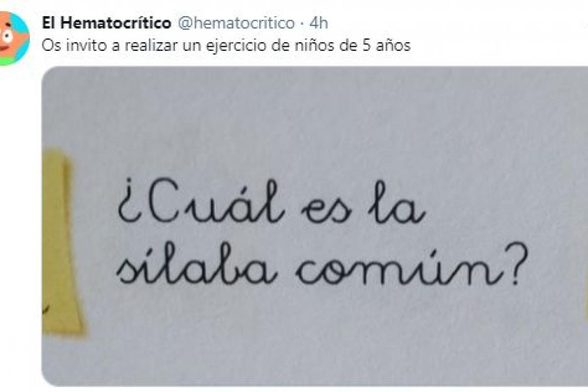 “Os invito a realizar un ejercicio de niños de cinco años”, ha publicado. El enunciado es sencillo: ¿Cuál es la sílaba común?