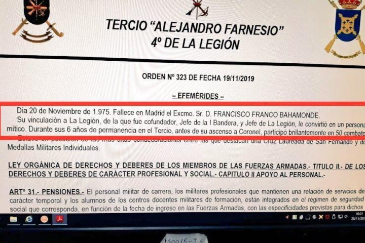 El Ejército investiga un boletín de la Legión en el que se loa a Franco como "un personaje mítico"