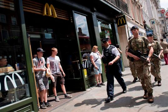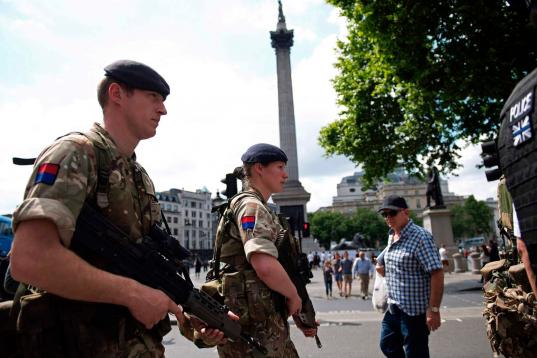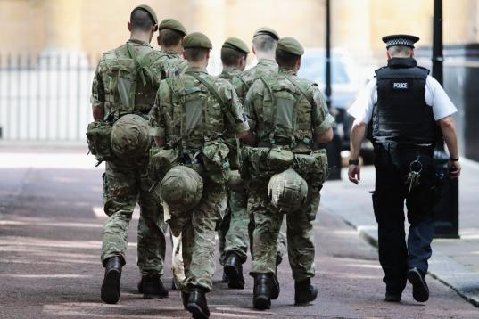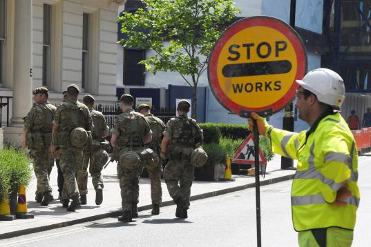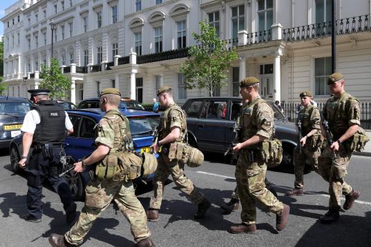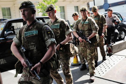 Scotland Yard confirmó esta mañana que el palacio de Buckingham, Downing Street, el Palacio de Westminster y embajadas todos serán protegidos por los militares, liberando a la policía para otras tareas. Los conciertos y los eventos deportivos tendrán una protección similar en las próximas semanas.