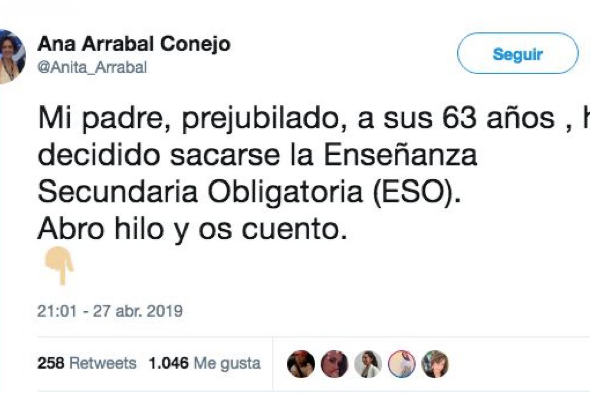 Una usuaria de Twitter llamada Ana Arrabal empezó un hilo hablando de la emotiva historia de su padre, jubilado a los 63 años.