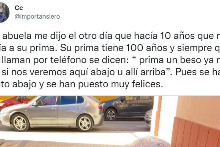 Ambas se llaman constantemente por teléfono y según este usuario de Twitter, nieto de una de ellas siempre se dicen: “prima, un beso, ya no sé si nos veremos aquí abajo o allí arriba”. Afortunadamente, pudieron verse abajo una vez más. “Se han puesto muy felices”, asegura su nieto.