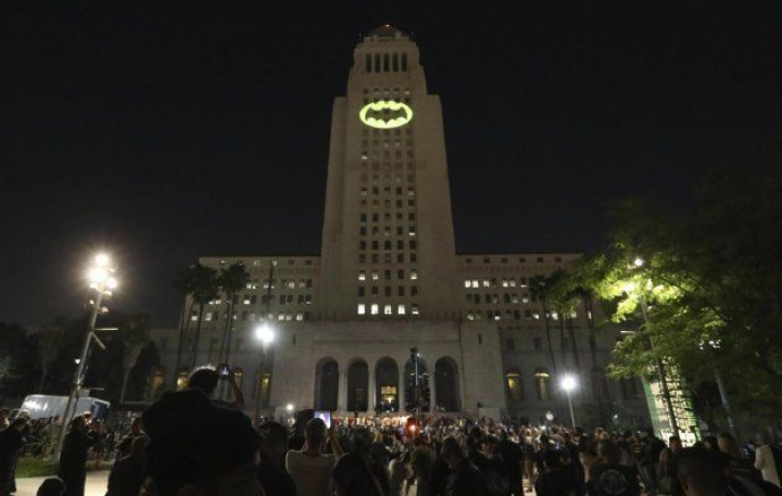 El alcalde de Los Ángeles, Eric Garcetti, con ayuda de las autoridades de la ciudad, lanzó esta noche la "bat-señal" en recuerdo al actor Adam West, el célebre Batman de la televisión, fallecido recientemente.